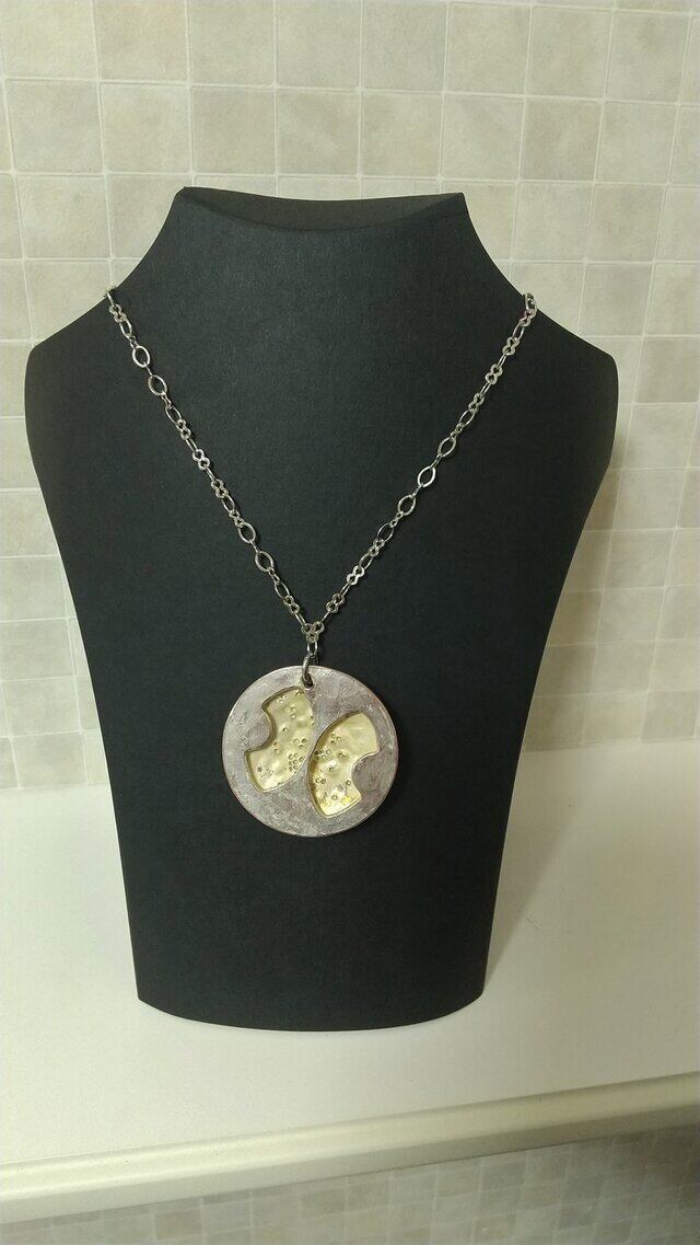 丸い「タル珪藻」をモチーフにした大ぶりで存在感のあるネックレスです。